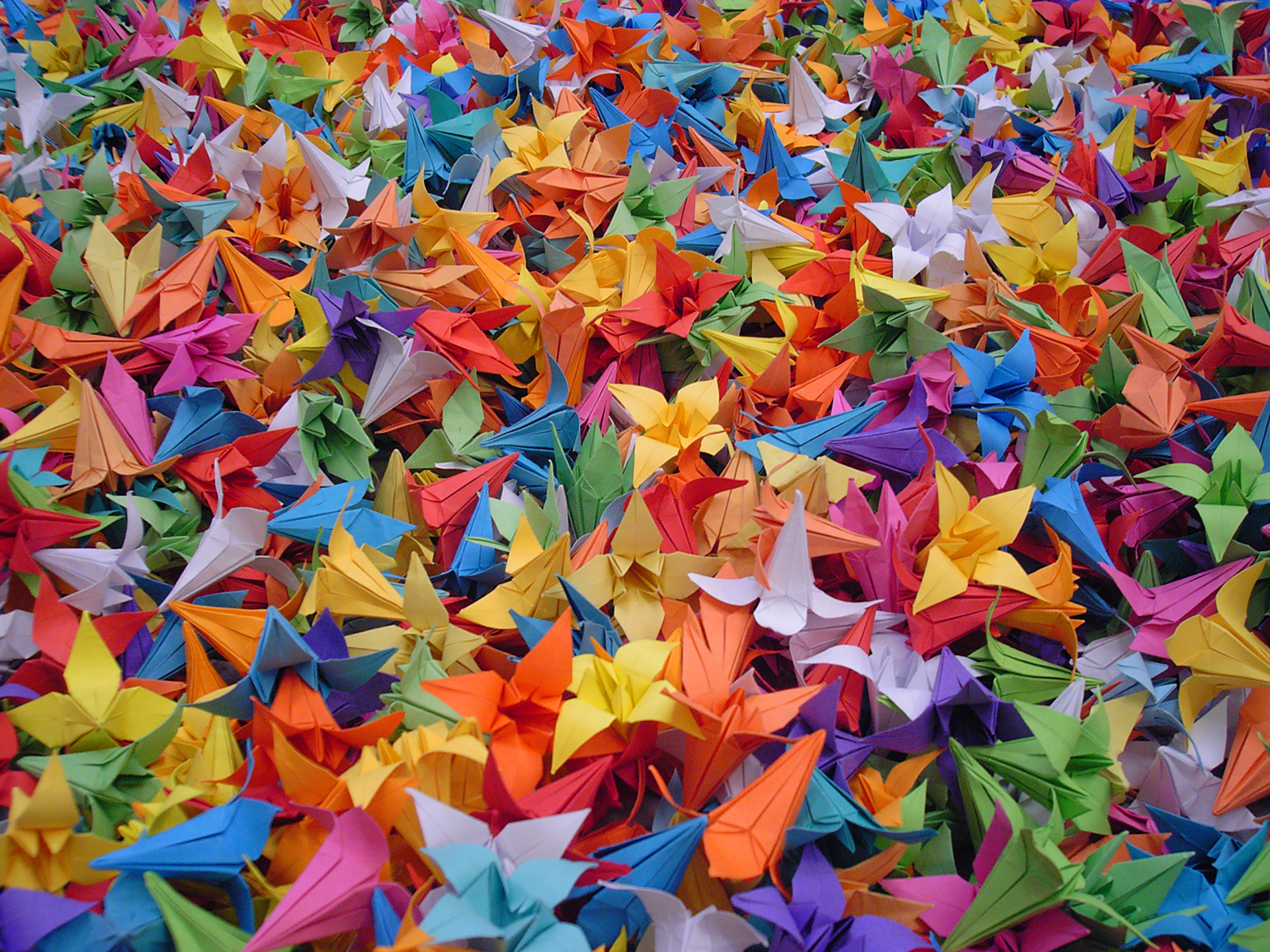 Making on average ten per day, everyday, for three years (2002-2005), 'Devotion' consists of approximately 10,000 origami flowers.